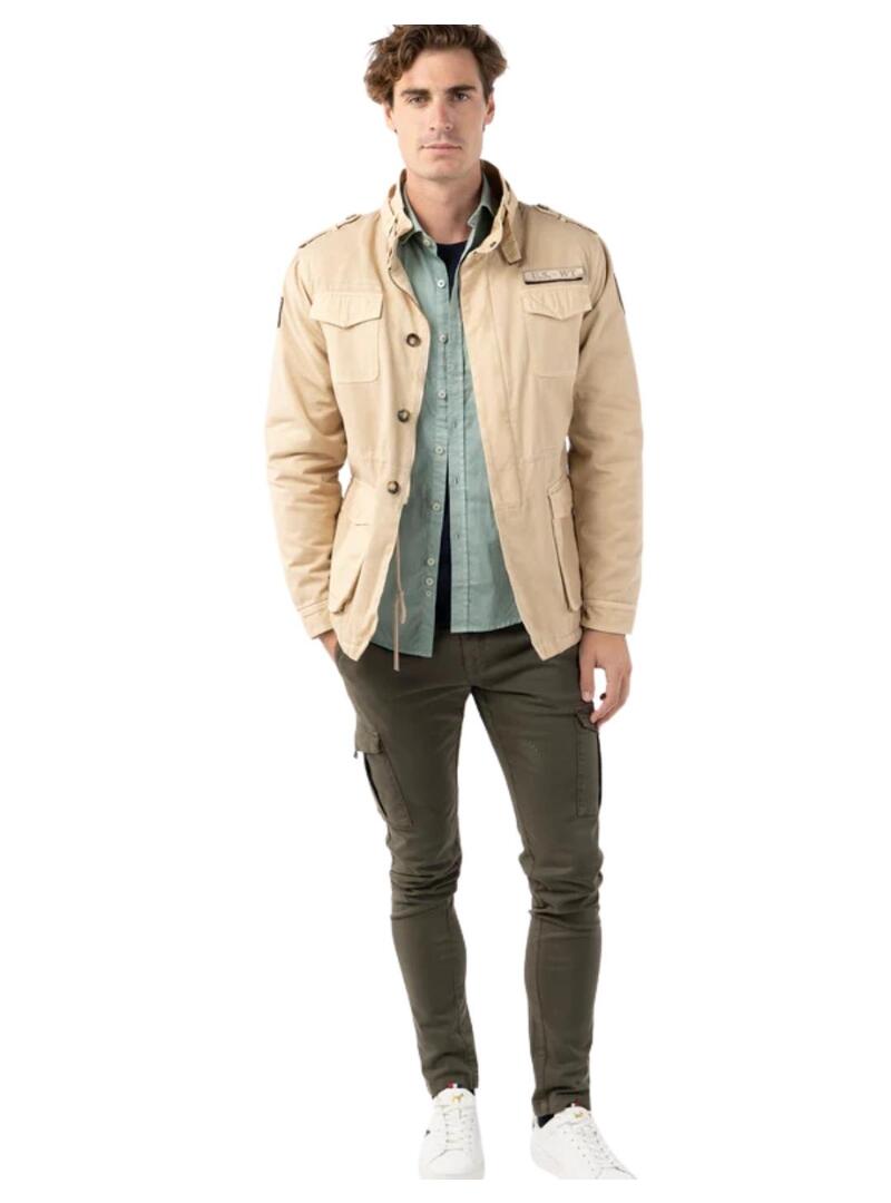 - Sahariana con 4 bolsillos. -Parches Intercambiables de Pecho, con recambios en Interior. -Cintura interior Ajustable. -Cierre Mediante Botones y Cremalleras. -Parches Mangas y Nuca Bordados. -Forro Fino de Borrego. -Custom Fit. -Detalle Ojales Tricolor En Broche de el Cuello.
