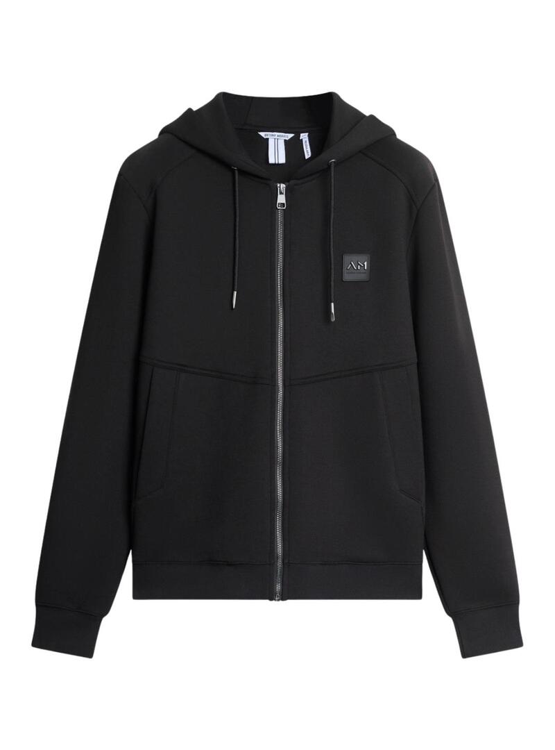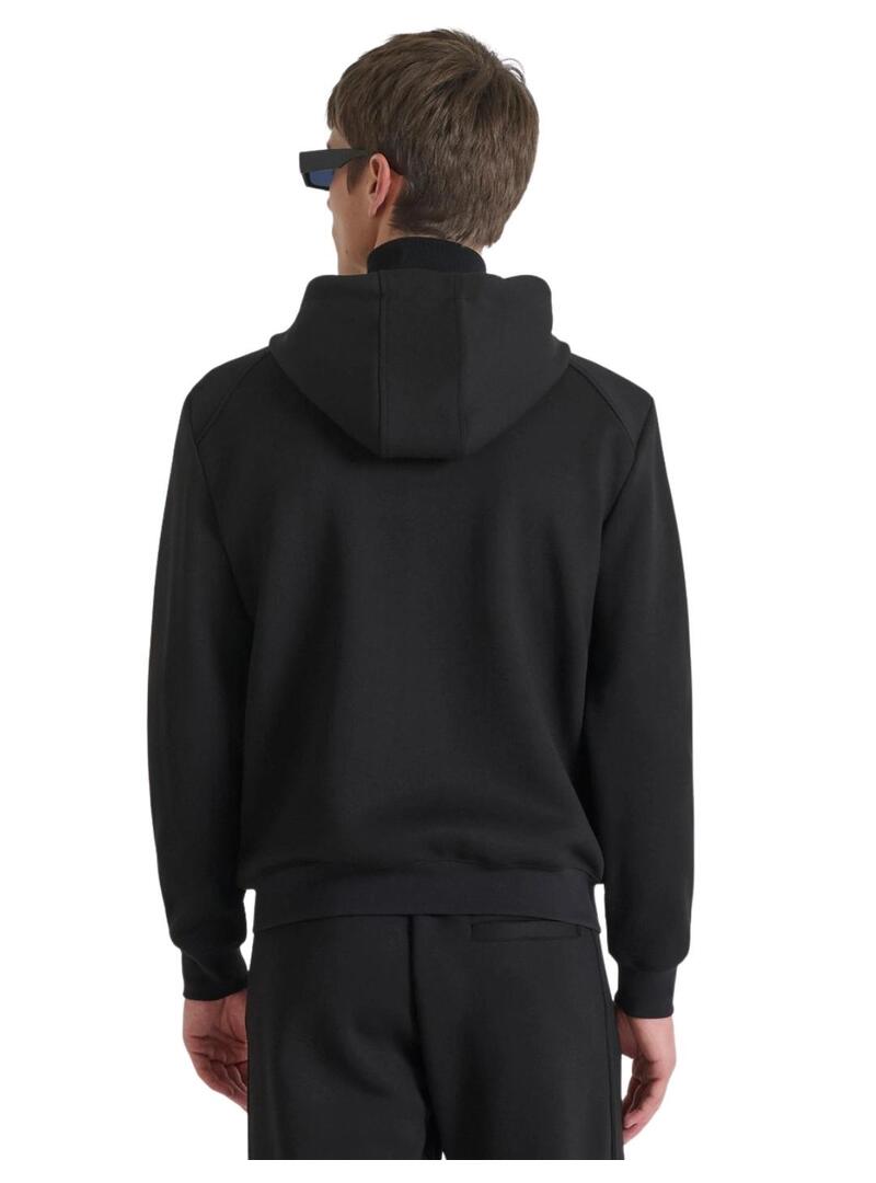 Sudadera regular fit con capucha, confeccionada con un tejido mixto de viscosa elástica. Cordones para ajustar la capucha, cierre de cremallera central y pequeño parche con el logotipo de goma aplicado en el pecho, y puños y bajo de punto elástico. Dos bolsillos con ribete. Este modelo de Antony Morato es perfecto gracias a sus líneas limpias y modernas, que lo convierten en una prenda atemporal e imprescindible para los amantes del estilo informal refinado.