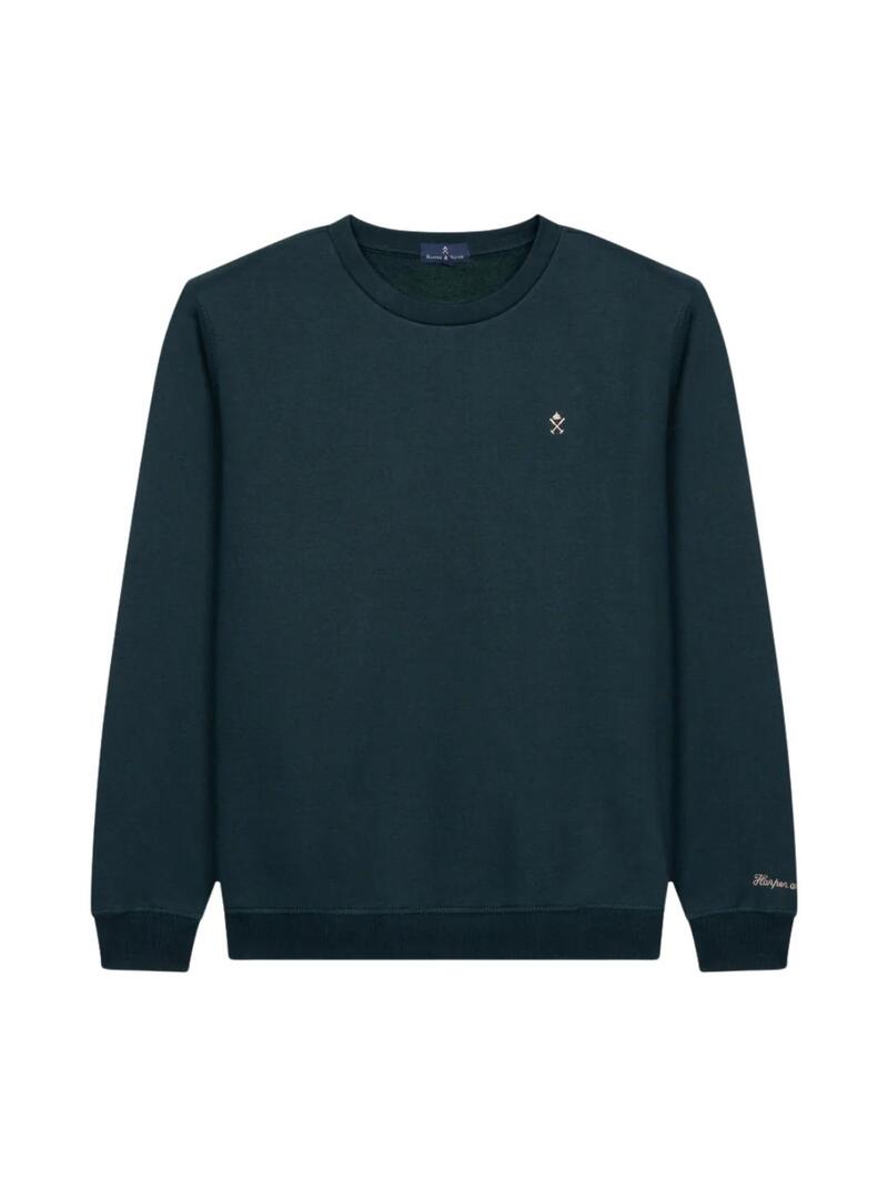 Sudadera básica con cuello redondo y logo bordado en el pecho. Confeccionada en mezcla de algodón perchado de alta calidad, presenta un diseño limpio, minimalista y elegante. El icónico logotipo se convierte en el único protagonista, añadiendo identidad con discreción. Su corte recto y puños elásticos aseguran comodidad y estilo duradero. Perfecta para formar parte del fondo de armario Harper & Neyer. Combínala con chinos slim fit, camisa y mocasines o sneakeers para un look casual pulido.