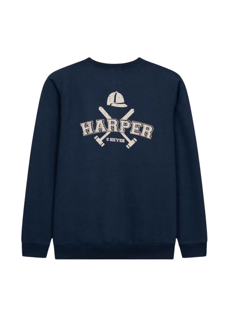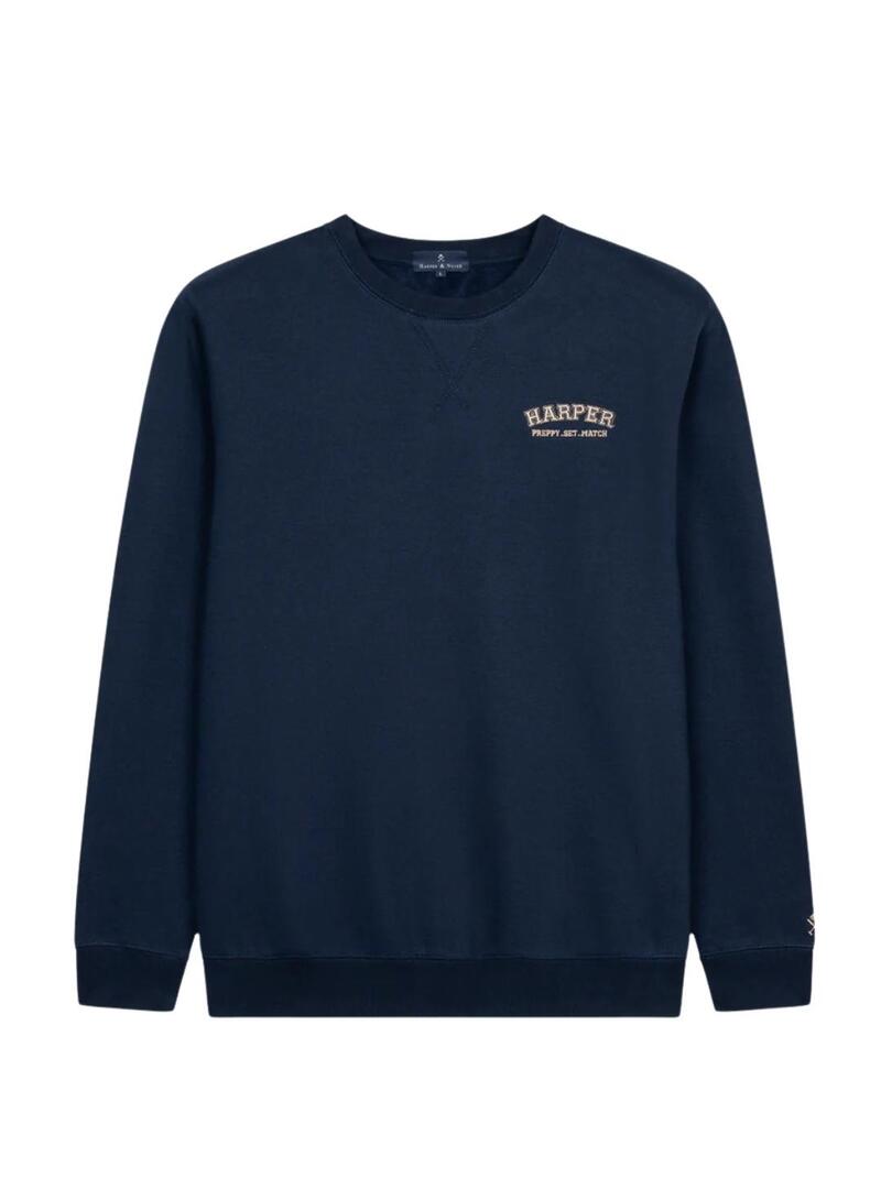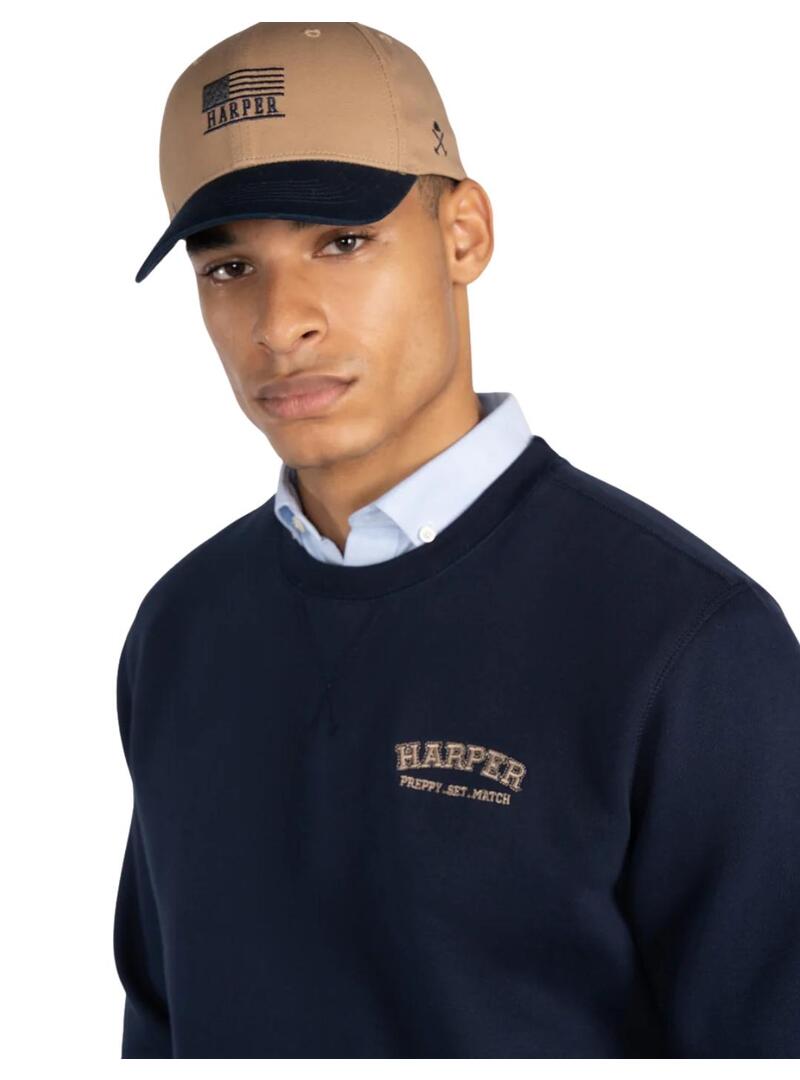 Sudadera de algodón con cuello redondo y corte regular fit. Confeccionada en mezcla de algodón suave y resistente, presenta acabados en canalé en cuello, puños y bajo para un ajuste clásico. Incluye bordado frontal “Harper & Neyer”, evocando el espíritu deportivo de los campus universitarios americanos. Pertenece al universo Old School y encarna a la perfección la esencia preppy, con un guiño al estilo atlético vintage. Ideal para combinar con pantalones chinos claros o vaqueros rectos. Completa el look con sneakers.